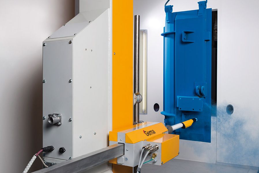 Se mueve un reciprocador ZA vertical dentro y fuera de la cabina de la adaptación a la anchura parte. La solución ideal también para las pistolas fuera de limpieza durante el cambio de color.