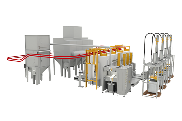 Una línea de productos modulares fácilmente adaptado a las necesidades de los clientes, ofreciendo calidad perfecta aplicación, grandes ahorros en polvo y una rápida amortización.